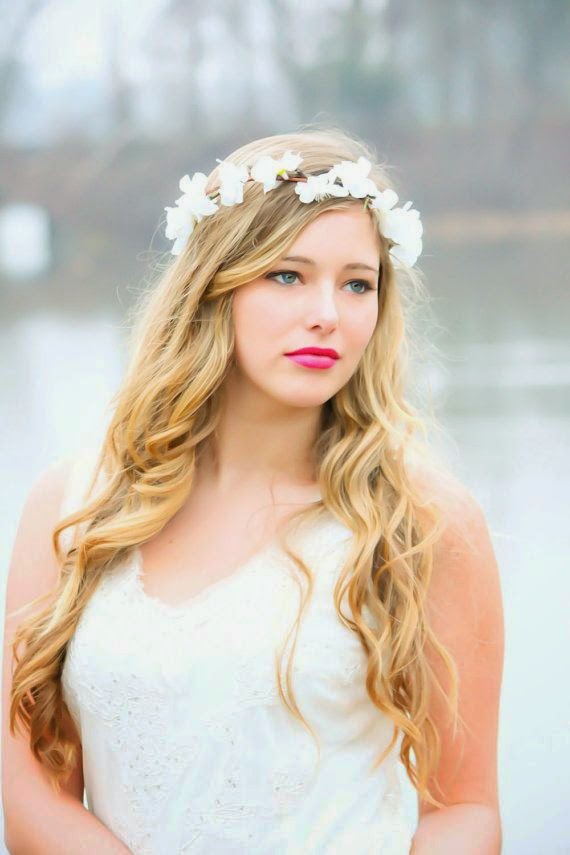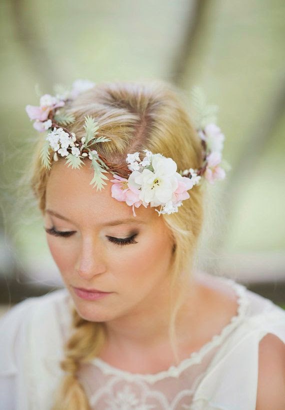 Coronas de Flores: Están muy de moda tanto en novias como en invitadas. Lo que aportan es un estilo un tanto desenfadado y muy natural, las hay de flores grandes o pequeñas, mas recargadas o mas sencillas, eso ya depende del gusto de cada novia. Las podéis encontrar aquí.