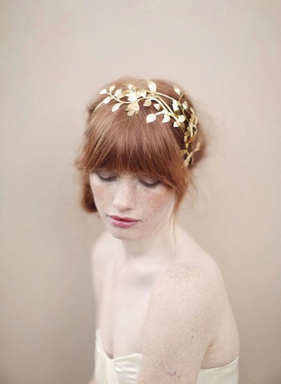 Coronas doradas: También se han puesto muy de moda. Es una alterativa a las coronas de flores aportando en este caso un estilo mas elegante, pero sin perder la sencillez que las caracteriza.