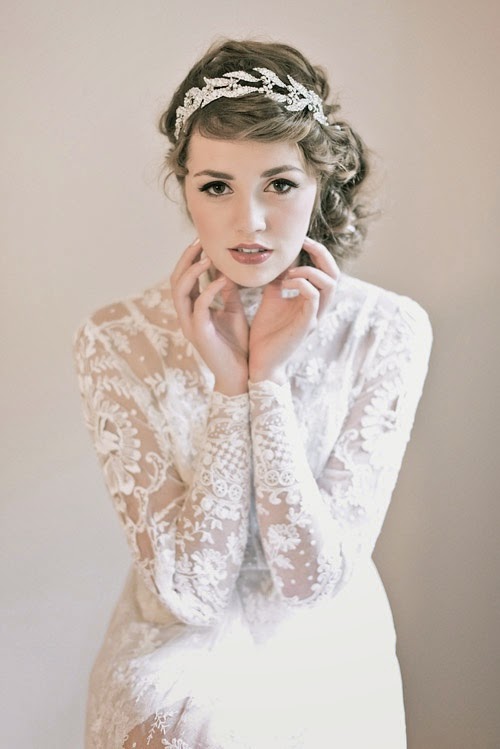 Cintas para el pelo: Se pueden colocar a modo de diadema, o bien a la altura de la frente. Las mas usadas suelen ser las de encaje con algún aplique. Aportan a la novia un aire romántico y un poco retro.