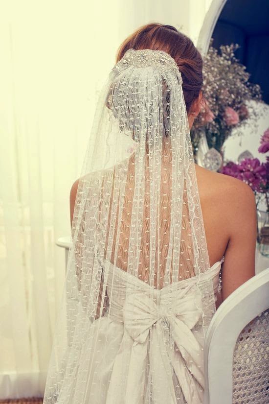 6. Dos tiras de tul saliendo del tocado a los lados del recogido