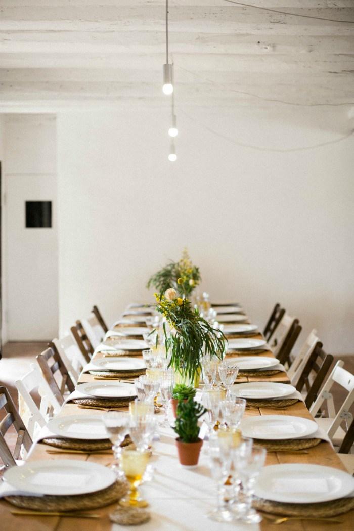 Para darle un toque campestre, no pongas mantel en tu mesa y añádele un toque de amarillo.