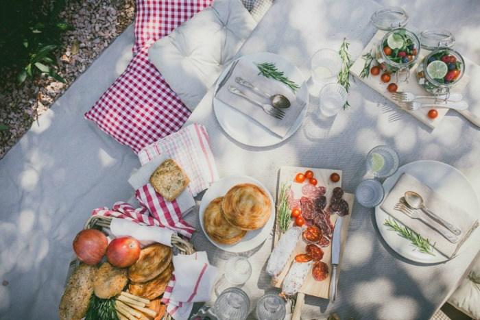 Si eres más de mesas informales y desenfadadas, la opción de picnic será ideal. Coloca los alimentos en diferentes tablas de madera y acompáñalos con panes de diferentes sabores.