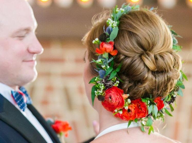 Cambia el diseño tradicional de la corona de flores y embellece la parte posterior del tocado en lugar de la parte frontal o los lados.Es un pequeño elemento sorpresa que hará que los invitados cuchicheen con un ooh y ahh terminen mientras caminas por el pasillo.
