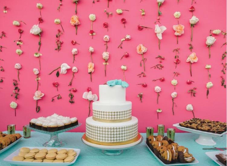 Los tallos pequeños con cinta adhesiva individual crean un telón de fondo increíble. Ya sea para la ceremonia, el candy bar o una foto de fondo, los cogollos se destacan maravillosamente contra un color vivo, y los tallos alineados verticalmente agregan un atractivo estético.Hablando de fotos, te dejo por aquí estas ideas para fotos de boda que no debes perderte para que saques alguna idea.