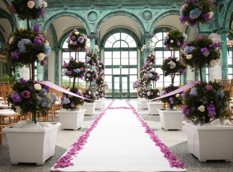 Un pasillo revestido de pétalos es una cosa pero un pasillo revestido de un topiario con árboles que parecen sacados de Alicia en el país de las maravillas es algo completamente diferente.Si optas por un esquema de color completamente blanco o neutro, eso significa que puedes jugar más con el color de tus flores ¡No tengas miedo de mezclar y combinar!