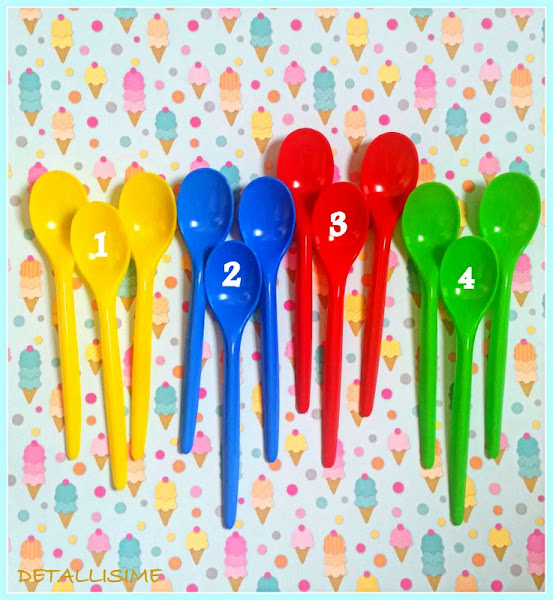 Uno de los detalles que más contenta me tienen son estas nuevas cucharitas de plástico resistente, en varios colores, azules, rojas, verdes y amarillas, que por aclamación popular hemos decidido incorporar a nuestro proyecto..