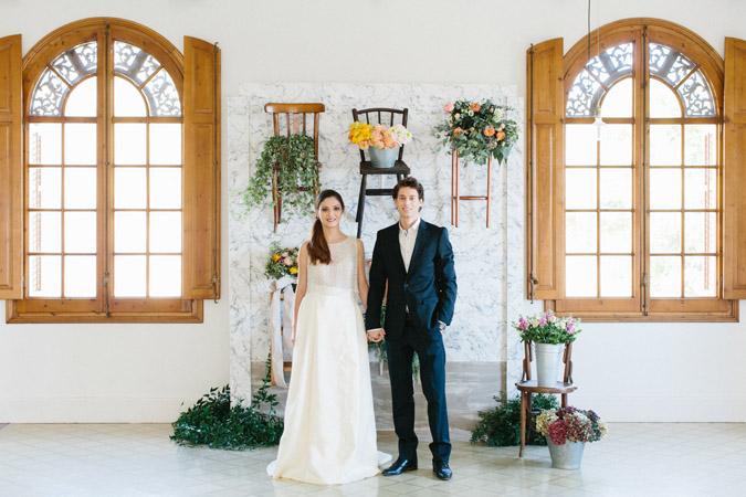 Montar un backdrop donde los materiales fueran el cobre y el mármol ha sido todo un reto. La verdad es que son materiales con los que normalmente no trabajamos y que parecen tan antagónicos entre sí, que el resultado final ha sido sorprendente y bonito a partes iguales.
