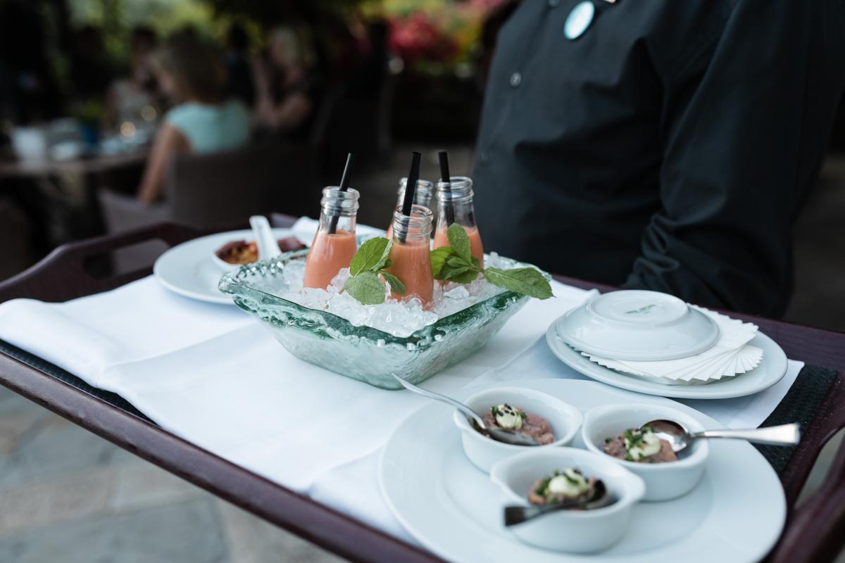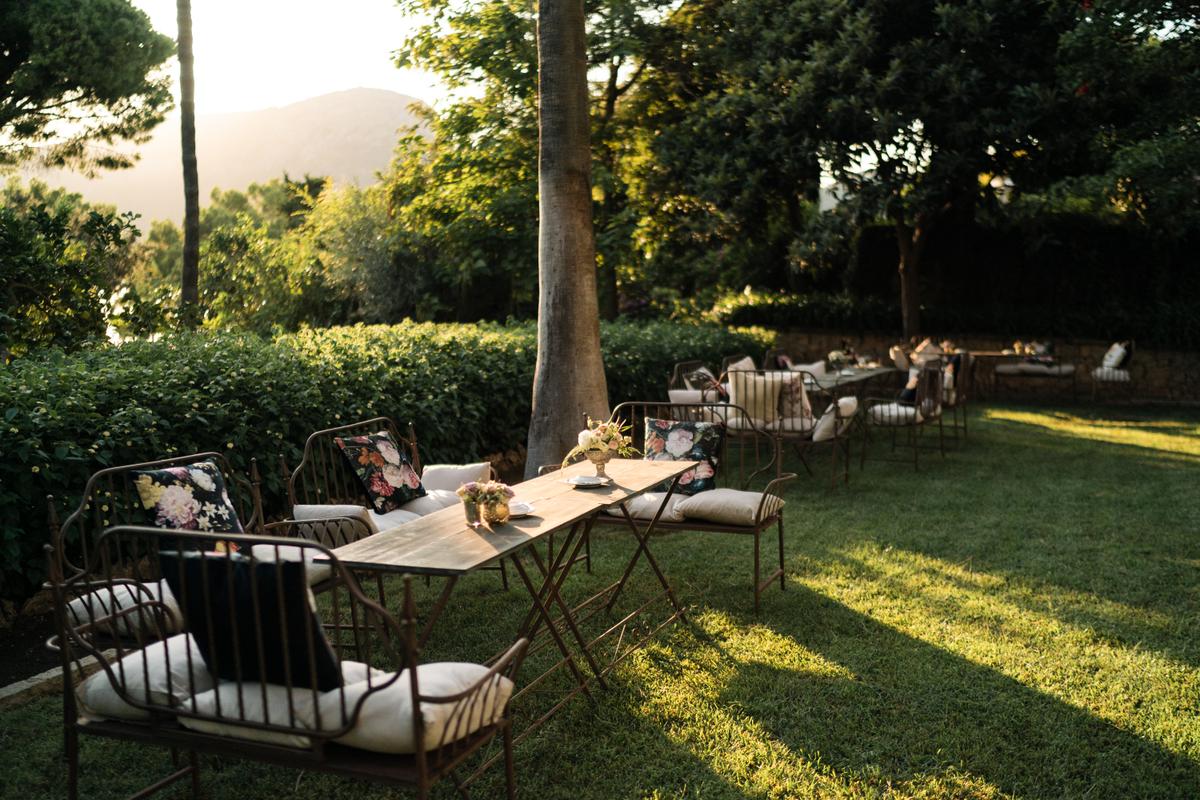 Para la ocasión se dividieron dos zonas, una en el jardín con la sombra de los centenarios árboles y otra algo más elevada con una enorme carpa beduina para dar sombra y donde se encontraban las mesas y barras de bebidas.