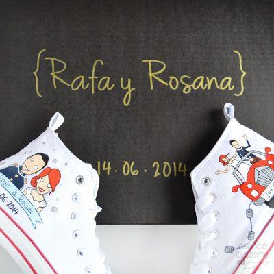 ¡ME ENCANTAN! Que mejor opción para regalar a los novios, que unas zapatillas personalizadas ¿y es que cuantos de ellos deciden cambiar sus incomodos zapatos, por sus zapatillas preferidas para la hora del baile? Un regalo que seguro, segurisimo les encanta. Estas zapatillas son obra de Esencia Custome, dos hermanas locas por el handmade, que un buen día decidieron dar rienda suelta a su creatividad, y gracias a ello han salido ideas tan geniales, como estas zapatillas, entre otros muchos productos que hacen.