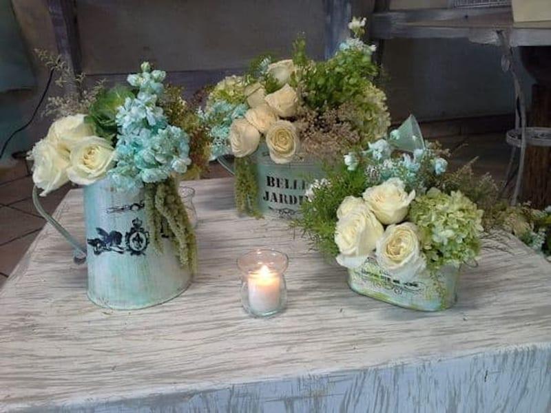 Los colores pastel forman parte del vintage si los acompañas de elementos antiguos como te mostramos en esta idea. Latas, jarrones, botellas, macetas o cualquier soporte que transmita antiguedad, si a eso le sumas colores pálidos o pastel lo habrás logrado. Si vas a utilizar detalles rústicos procura que las flores tengan una textura gruesa y de apariencia abundante.Fotografía: Foto estudio Dreams