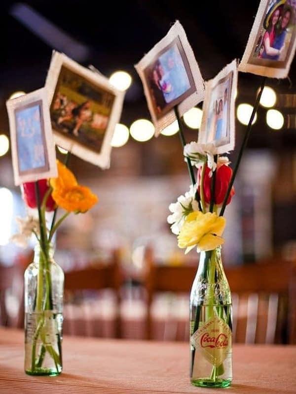 ¿Por qué no decorar con centros de mesas llenos de algunas fotografías de tus mejores momentos en pareja? No sólo solo es original, sino que puedes compartir con tus invitados tu historia de amor. Con esta idea podrás literalmente ilustrar la razón por la que te casas con ese hombre tan especial.Fotografía: Adriana Guzmán