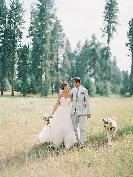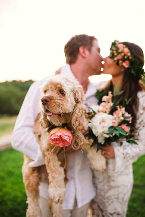 Incluye a tu perro en la sesión de fotos. Tanto si va a participar en la ceremonia como si no, podemos conferirle su cuota de protagonismo en la sesión de fotos de nuestra boda. ¡Esto seguro que le divierte mucho!