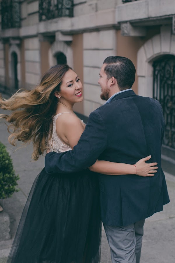 También quiero compartirles parte de nuestras Engagement Photos, la verdad estoy enamorada de ellas, las hizo Marcela Cerbón una fotógrafa que hace además de fotos de boda, editoriales de moda. Decidimos contratarla porque tiene un estilo que nos encanta, nuestra idea era utilizar elementos urbanos, moda, diseño y gastronomía ya que son las cosas que más disfrutamos compartir y Marce fue la persona perfecta para transmitirle lo que queríamos. Si pudiera darles un consejo de como elegir a su fotógrafo de bodas mi recomendación sería buscar una persona a la que conozcan y que les guste mucho su trabajo. Si no tienen amigos fotógrafos pues simplemente deben de fijarse en que les gusten sus fotos y más importante aún que se sientan cómodos con esa persona. Es súper importante la confianza y también que puedan decirles que les gusta y que de plano no.
