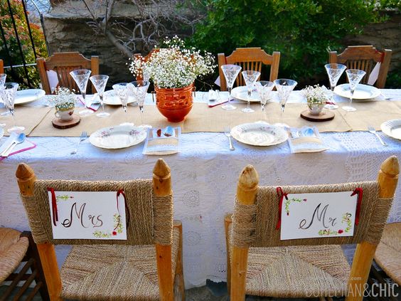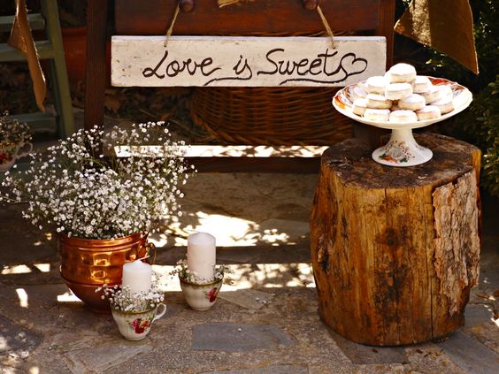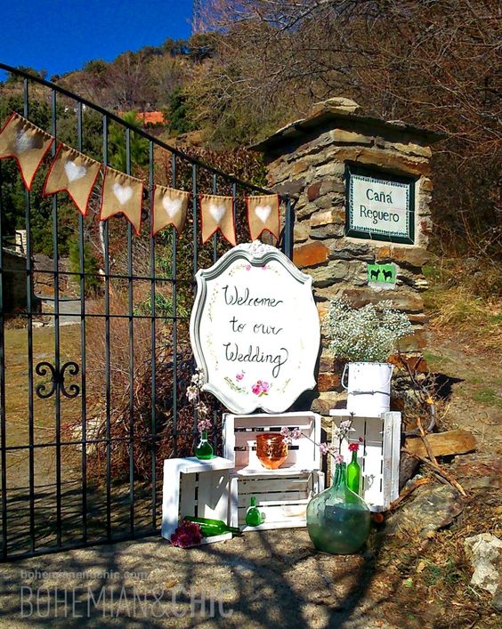Los carteles y señales estan presentes en múltiples ubicaciones desde la ceremonia pasando por el banquete en los photocall,candy bar, dando la bienvenoda a la boda, señalando el camino de las diferentes zonas o la ubicación de novios e invitados. Cualquier excusa es buena para poner este elemento decorativo a la vez que útil.
