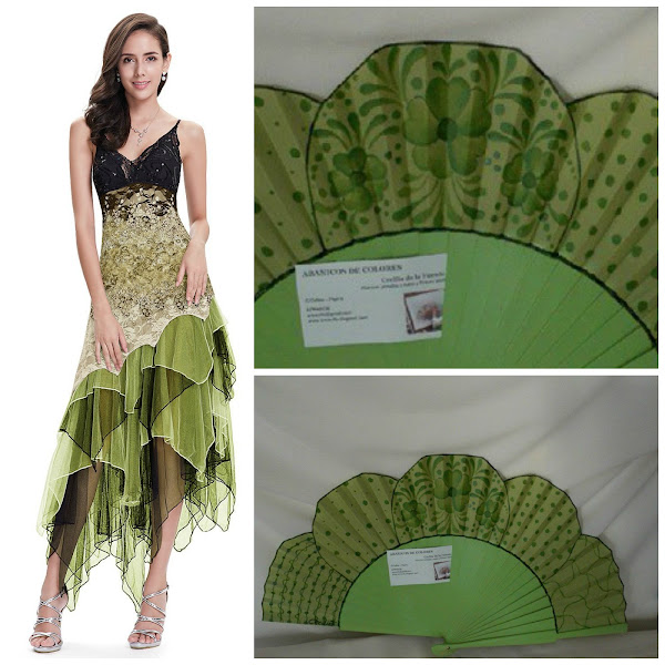 Son distintas tonalidades de verdes,crudo y negro y yo vuelvo a apostar por un abanico recortado y esta vez en verde pastel,jugando solo con colores verdes.