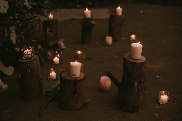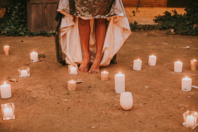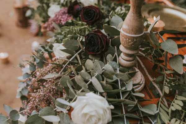 Presidiendo la sesión un espectacular mesa nupcial mezclando diferentes estilos, combinando una puerta antigua con los soportes de una mesa clásica, todo ellos con una elegante tarta a la luz de las velas.
