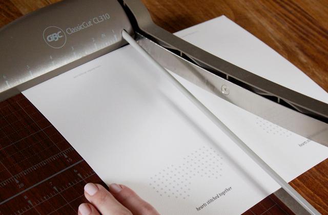 2. Por cada A4 tenéis dos tarjetas, así que con la tijeras, o mejor aún, con una cizalla, cortamos el papel a la mitad.