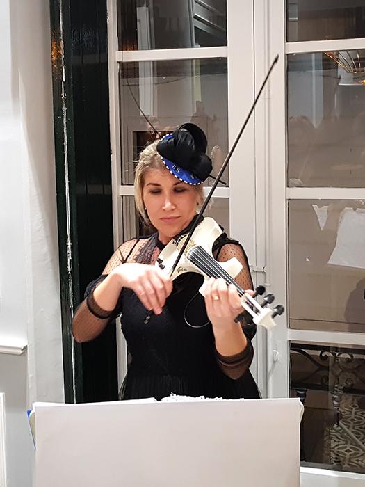 Nada más llegar, al subir por las escaleras, se escuchaba el sonido de un maravilloso violín que envolvió el evento con la magia de su música.