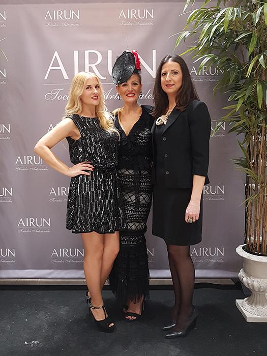 Las modelos junto Nuria y Fran de Airun Tocados y la diseñadora Sofia Qostaly.