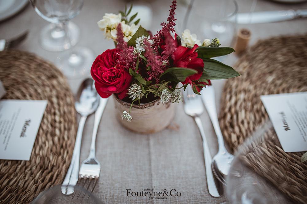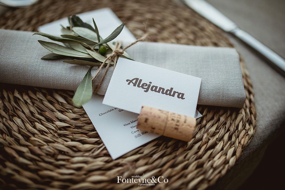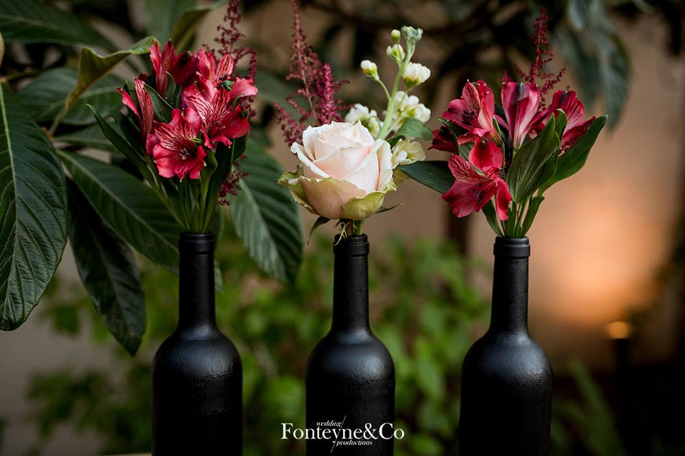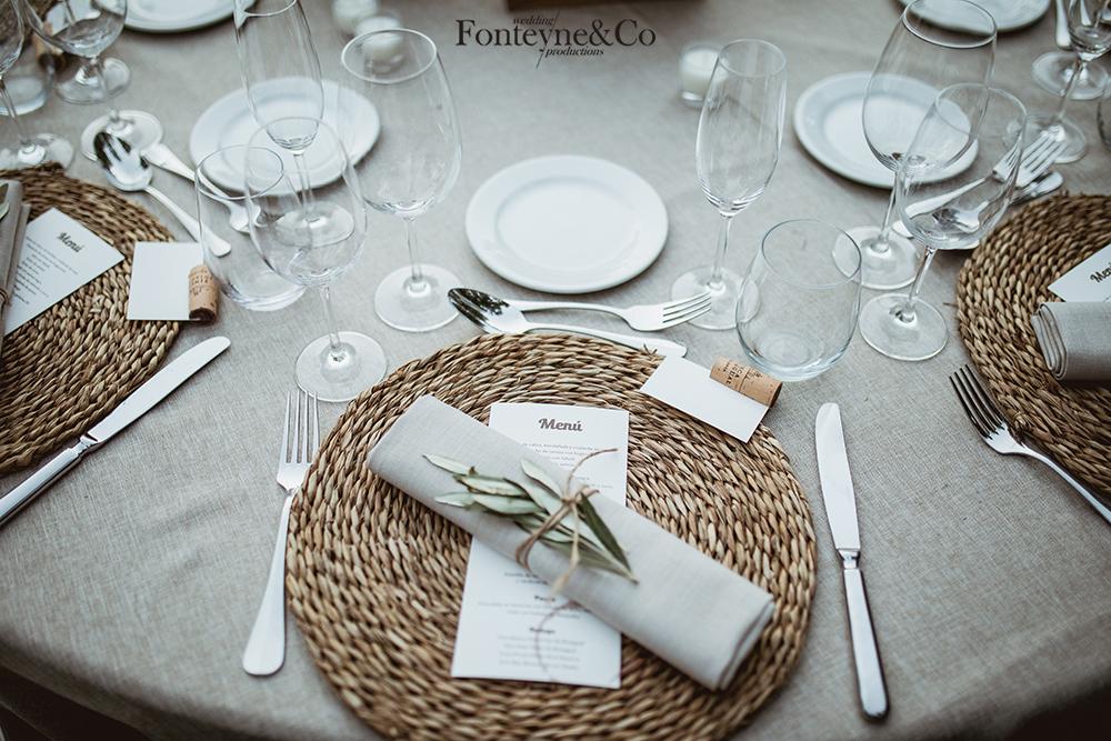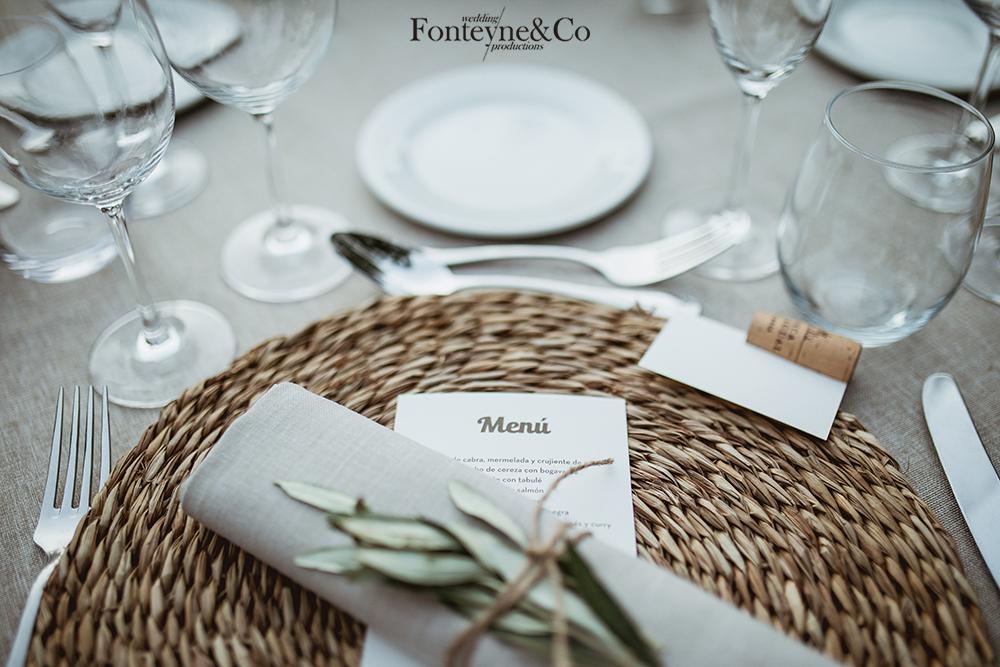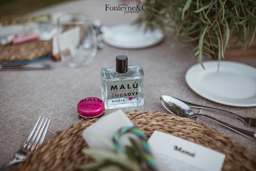 Como los recién casados son muy aficionados al arte de la enología y viticultura no dudaron en darle al vino su máximo protagonismo…Para ello colocamos muchas botellas de vino combinadas con flores y pizarras donde los comensales podían conocer todos los detalles del mismo. Una auténtica invitación a disfrutar de los buenos caldos D.O.Binissalem, cultivados en Mallorca y ¡brindar por la pareja!