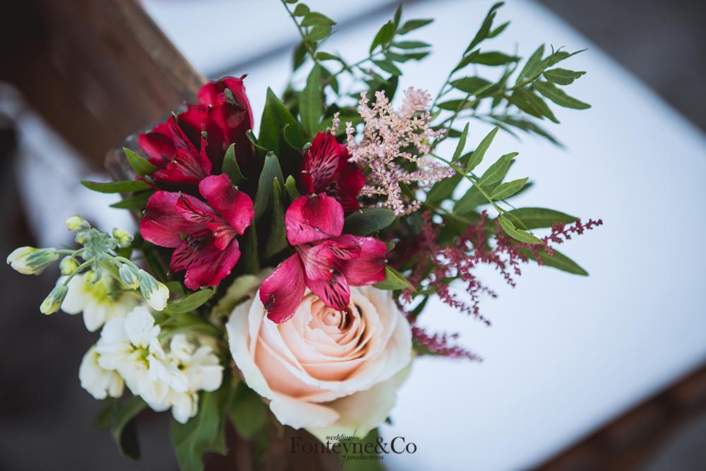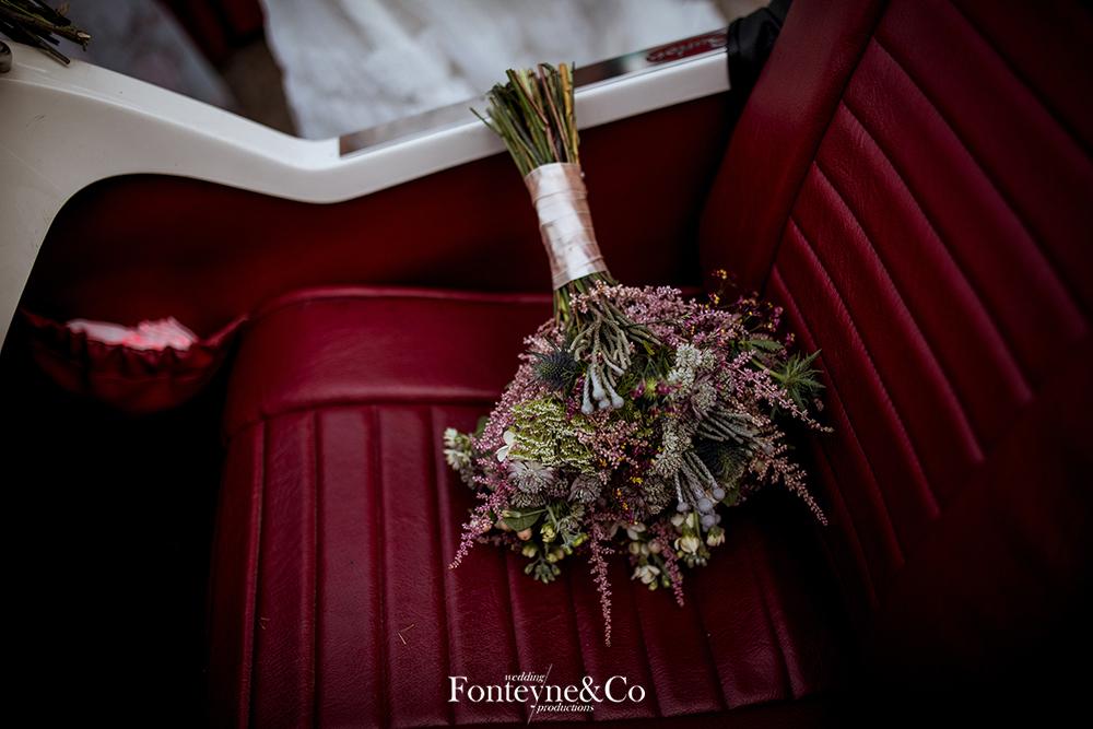 Llevaba una pulsera de Pandora y unos pendientes de las joyas familiares. El ramo de novia se lo preparó el equipo floral de Moments con toques silvestres rosáceos…