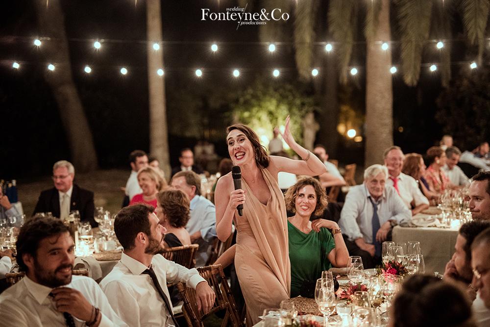 Durante el banquete se sucedieron emotivos momentos donde los amigos y familiares de los novios no escatimaron en elogios hacia el nuevo matrimonio; mensajes, discursos, sorpresas…