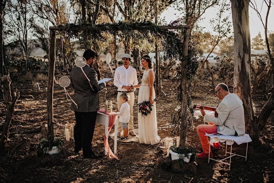 Elegí un enclave rodeados de árboles, como ellos deseaban, con un guitarrista y de fondo las olas del mar y las hojas de los árboles sonaban junto a los pájaros.