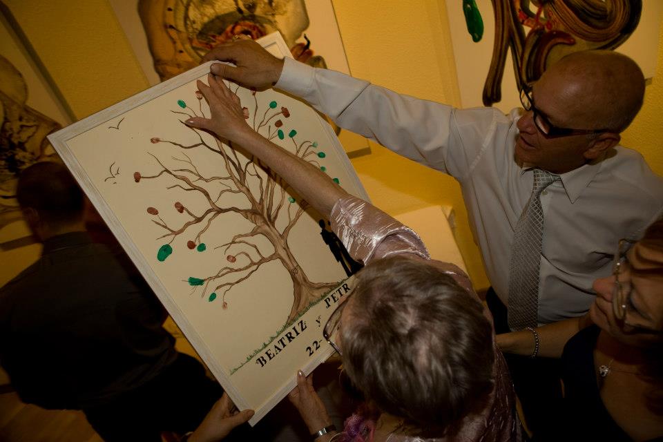 Hoy en el blog podéis ver cómo se divirtieron dejando su huella los invitados de esta novia en el cuadro que ella mismo pintó para su boda.