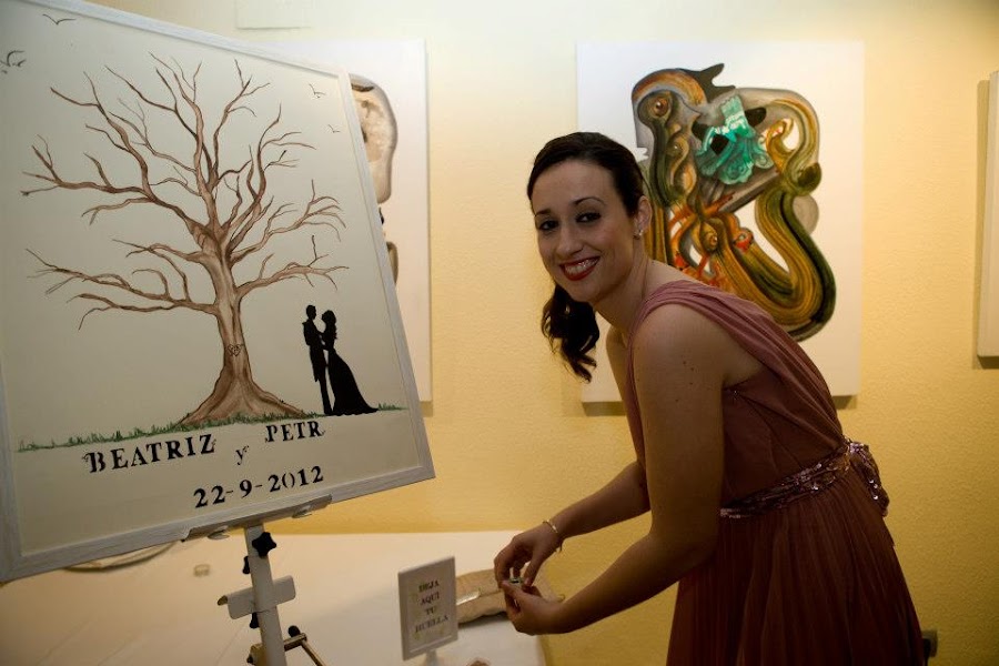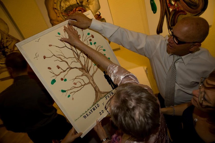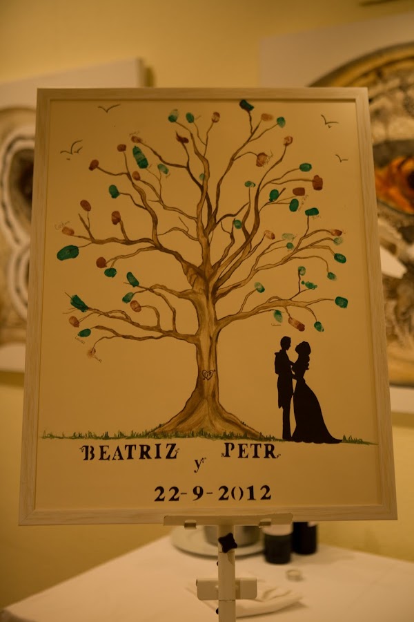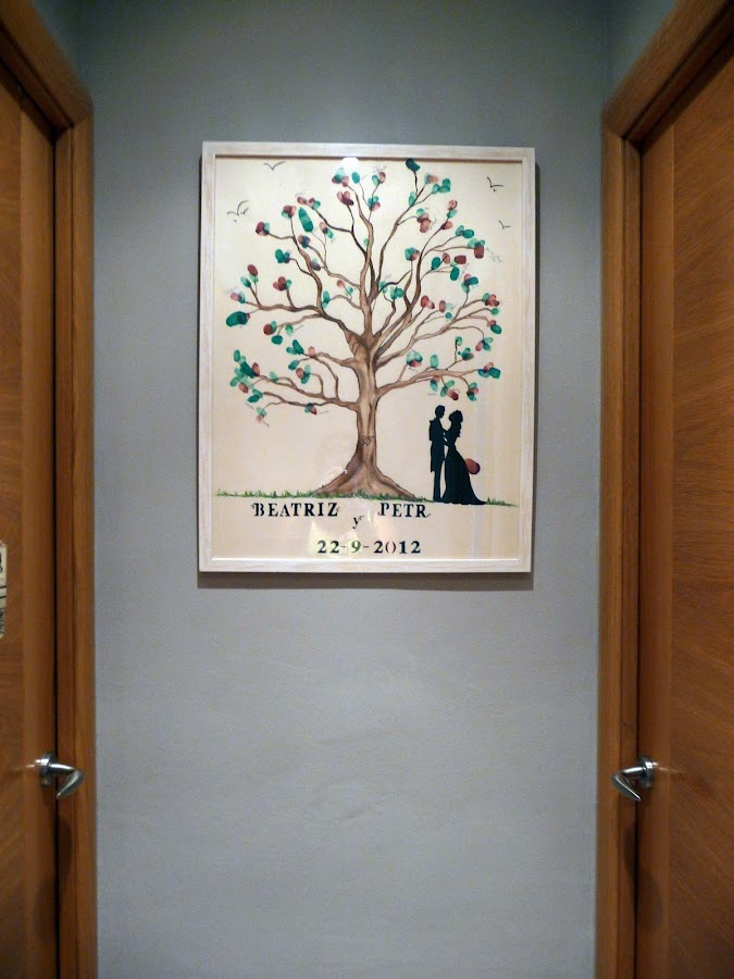 Ahora que los cuadros de huellas para bodas son una de las opciones más divertidas y novedosas para que vuestros invitados os dejen su recuerdo el día B, me gustaría sugeriros esta idea mostrando imágenes del árbol de huellas de una novia que es seguidora del blog.