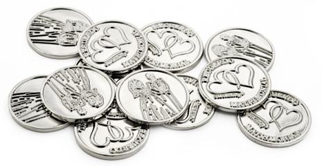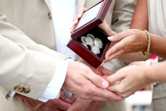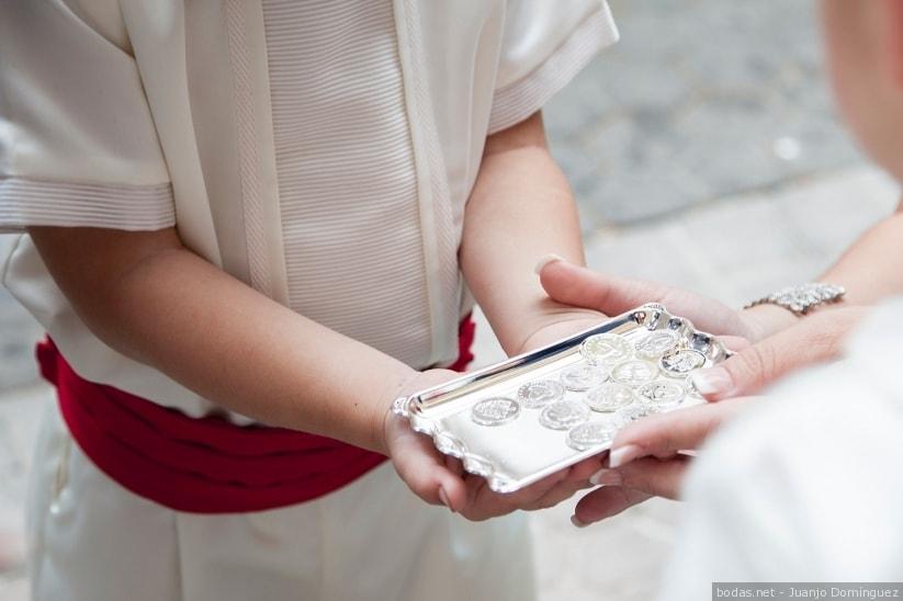 Las arras de boda se componen de 13 monedas siendo una por cada mes del año, doce, y una más para simbolizar la promesa de ambos de ser generosos y ayudar al más desfavorecido.Ritos