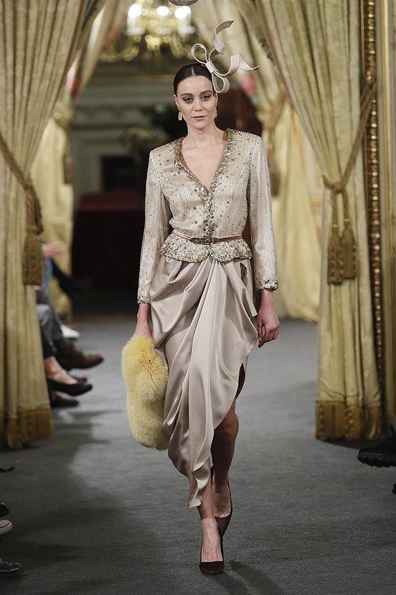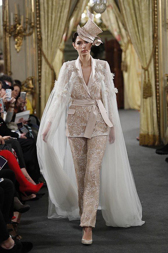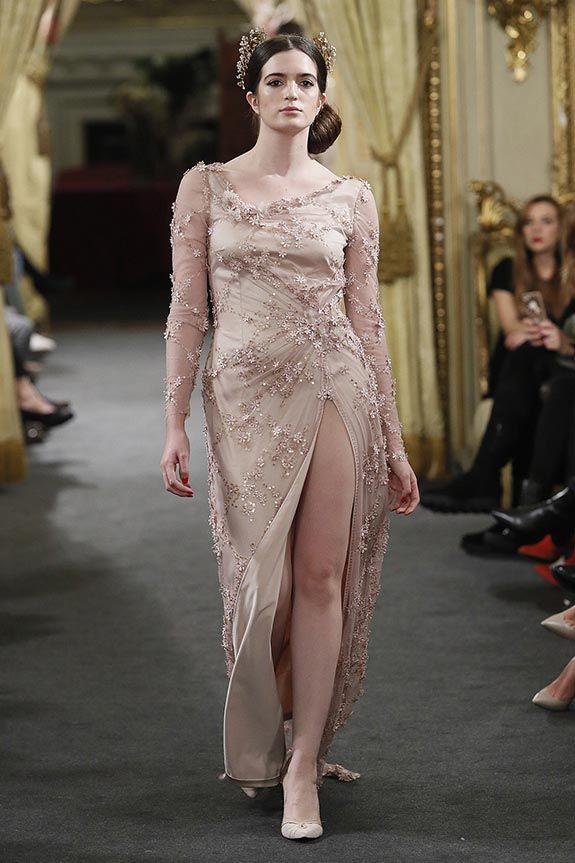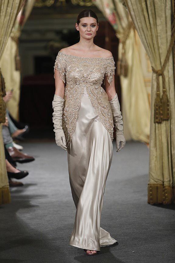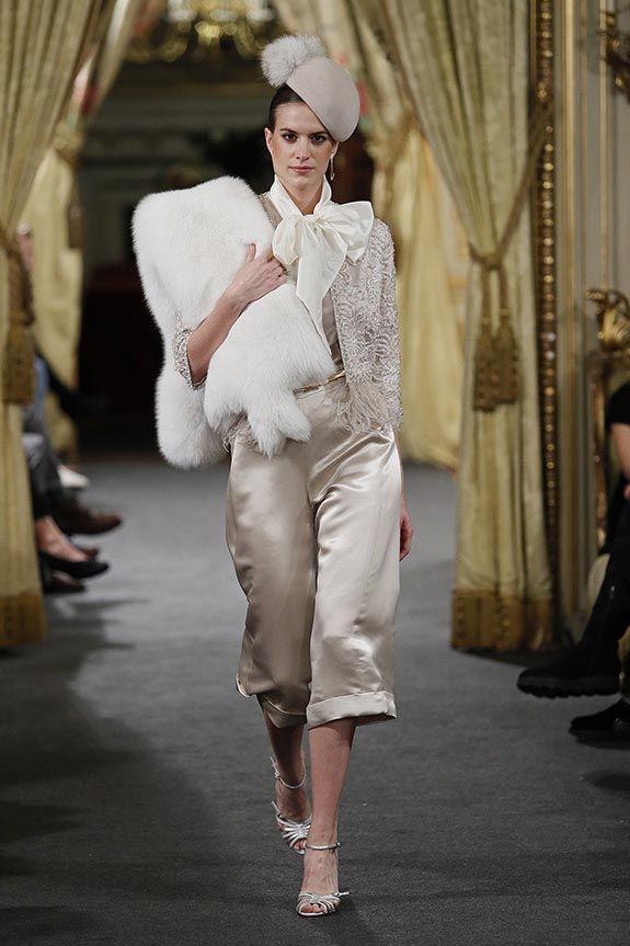 Tonos empolvados y tintes dorados, los tonos blancos y los beiges para el traje de novia. Un viaje visual a través del lujo que recupera el glamour en el vestir evocando romance, aventura y anticipación.