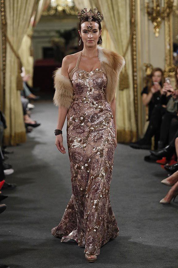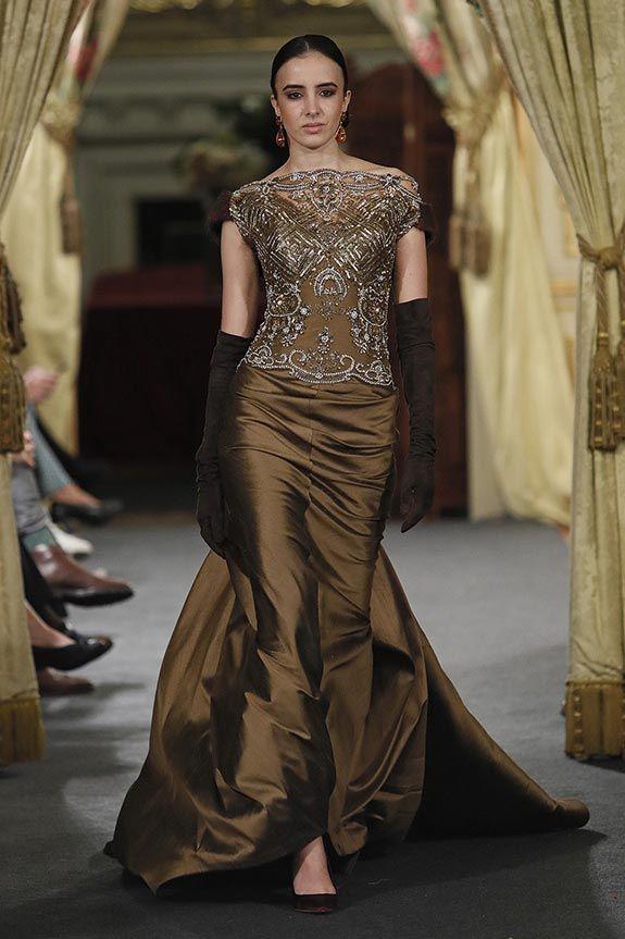 Emilio Salinas centra su fuente de inspiración, su musa, en una mujer que prepara su equipaje de moda para viajar de occidente a oriente a bordo del Orient Express. Los tejidos, elegidos con intencionalidad, seda natural, dupión, organza, seda salvaje y gazar, rememoran París, Venecia se vislumbra en los brocados, en los damascos y las pedrerías y los bordados en cristal son de inspiración oriental y recuerdan el destino final del viaje, Estambul.