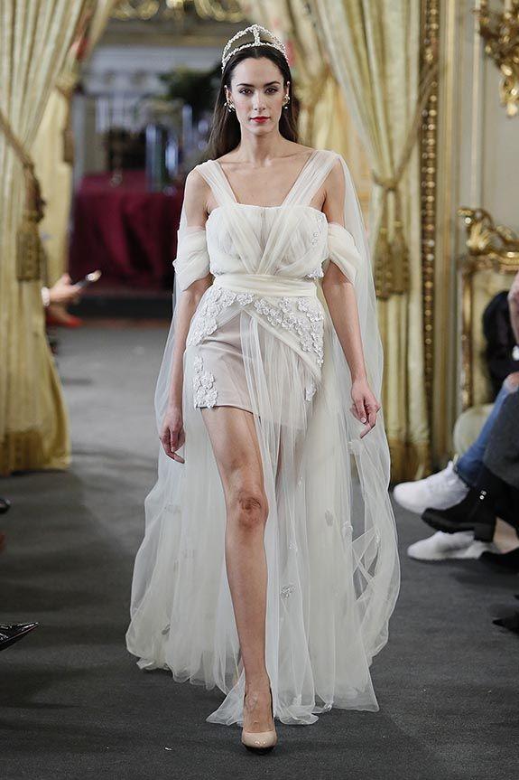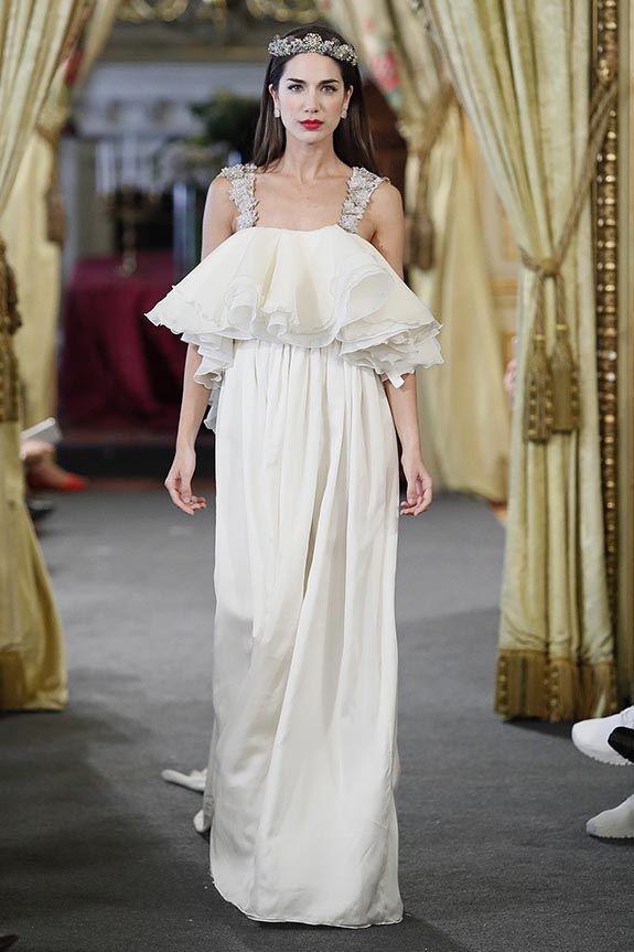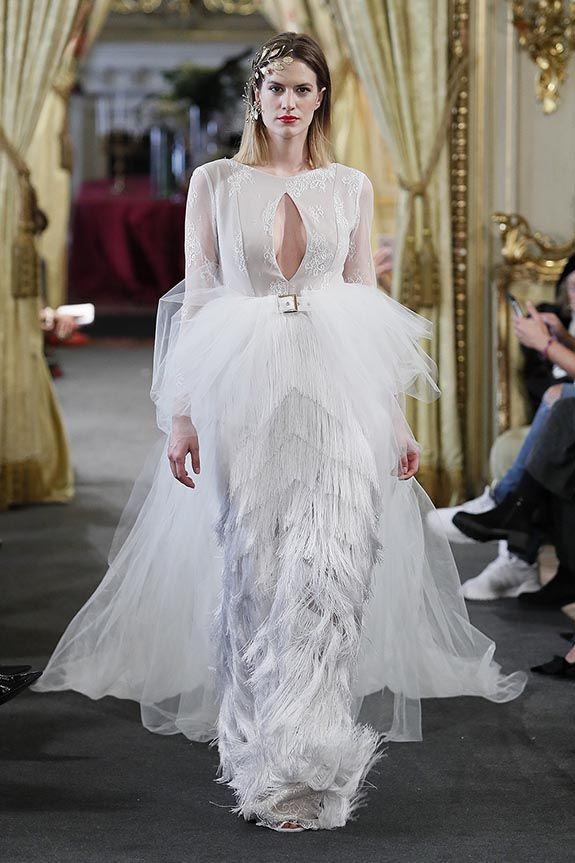 Apuesta personal, aportando artesanía y un trabajo muy elaborado con bordados, terciopelo, jacquares, sedas y tul de piedra combinados con plumas, transparencias y volúmenes, crean piezas únicas y maravillosas. Una variedad de calidades lujosas junto con un diseño confeccionado mediante sugerentes escotes geométricos, gasas esculpidas con delicados drapeados fusionados con motivos florales. Esta riqueza en textura ofrece otra visión a esas novias que no se visten de un blanco impoluto, apostando por la sutilidad y suaves tonalidades pastel, la sofisticación y rica gama como el rojo, llegando al irreemplazable blanco.