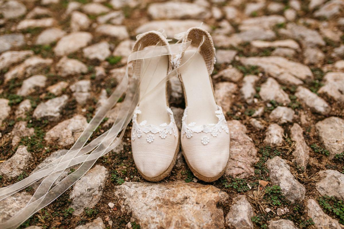 También lució unos bonitos pendientes regalo de su madre y hermana. Por su parte, su padre le regaló su anillo de bodas, y aunque en un principio pensó en usarlo para hacer su propia alianza, al final optó por guardo como recuerdo. A sus pies unas bonitas alpargatas personalizadas.