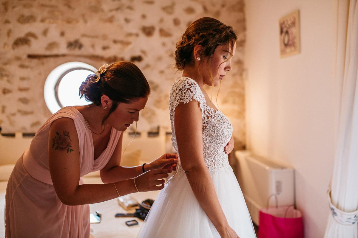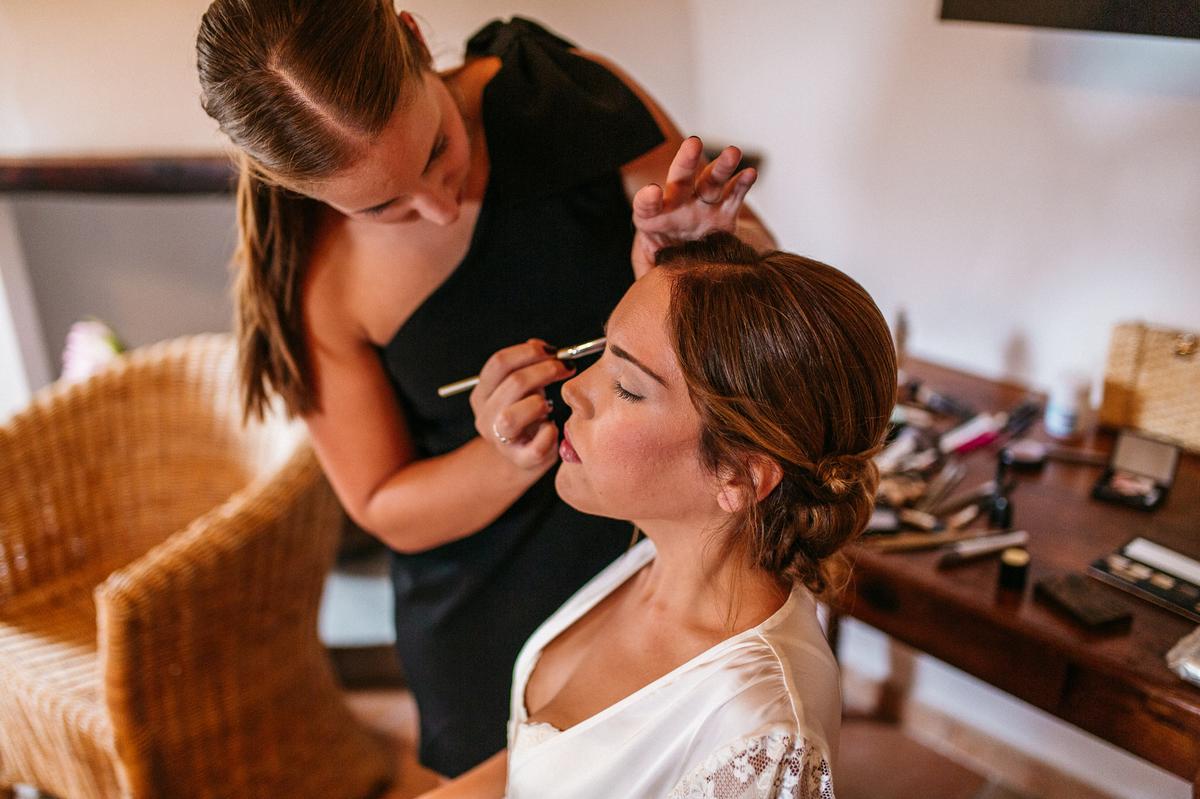 Aurora, por su parte, eligió la finca Biniforani Nou, propiedad de su tía, donde acompañada de su madre y su hermana se preparó a conciencia para estar radiante.Como toda novia que se precie hubo ritual de maquillaje con la esteticista y maquilladora Laura Castanyer , peluquería con la estilista Teresa Capó y por supuesto, ¡ponerse su precioso vestido, un vestido de Rosá Clará que le personalizaron especialmente para ella ya que Aurora diseñó personalmente la espalda del modelo de traje de novia que lució, y que, ¡le quedaba como un guante!