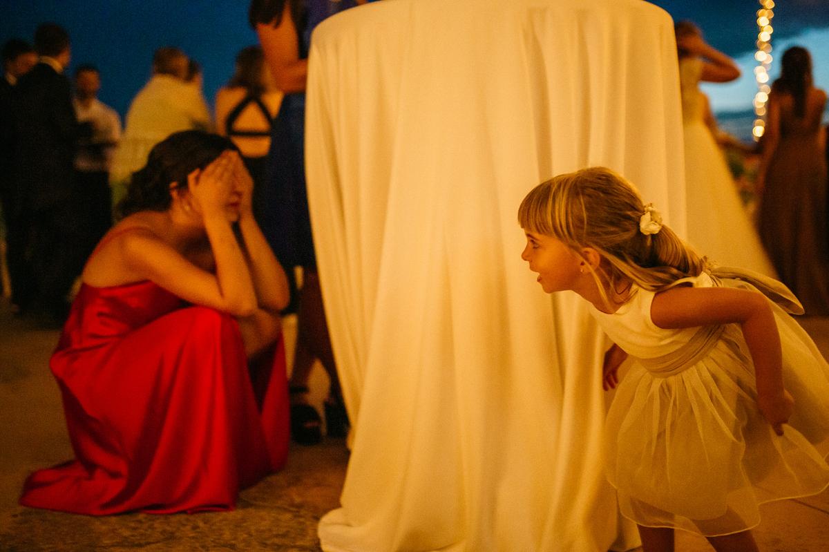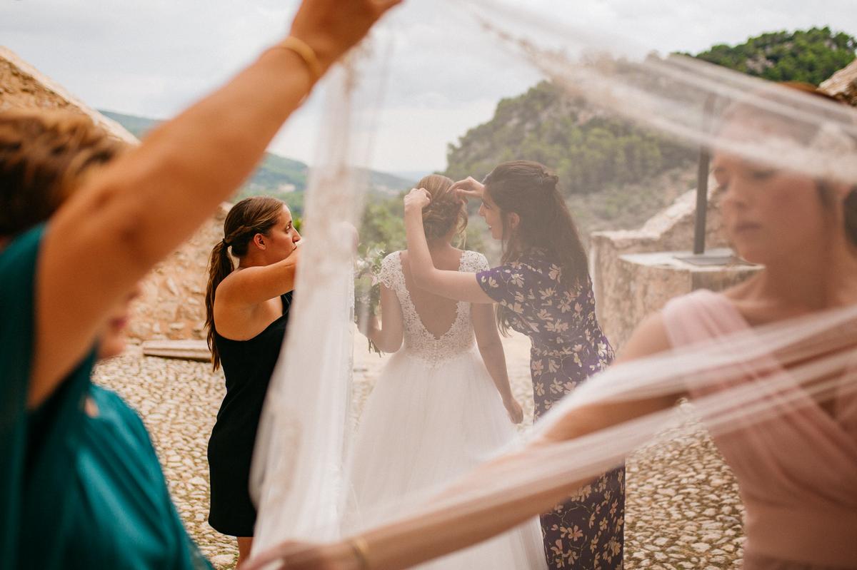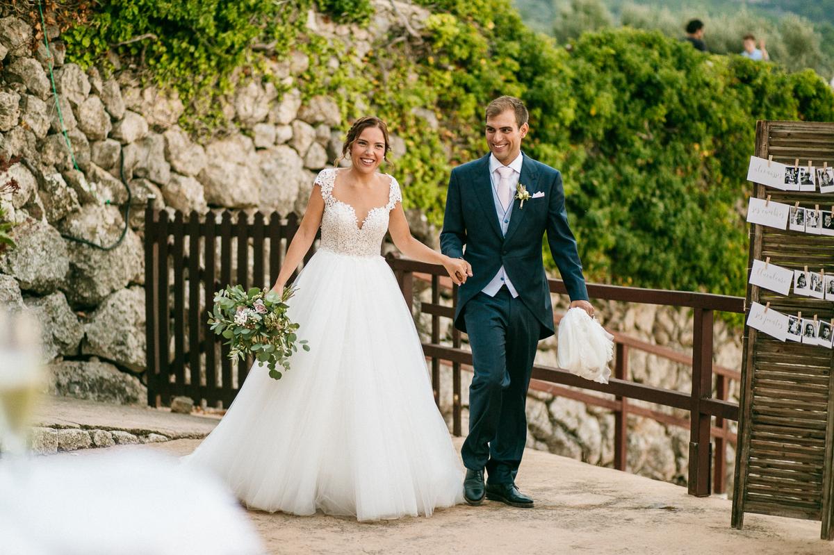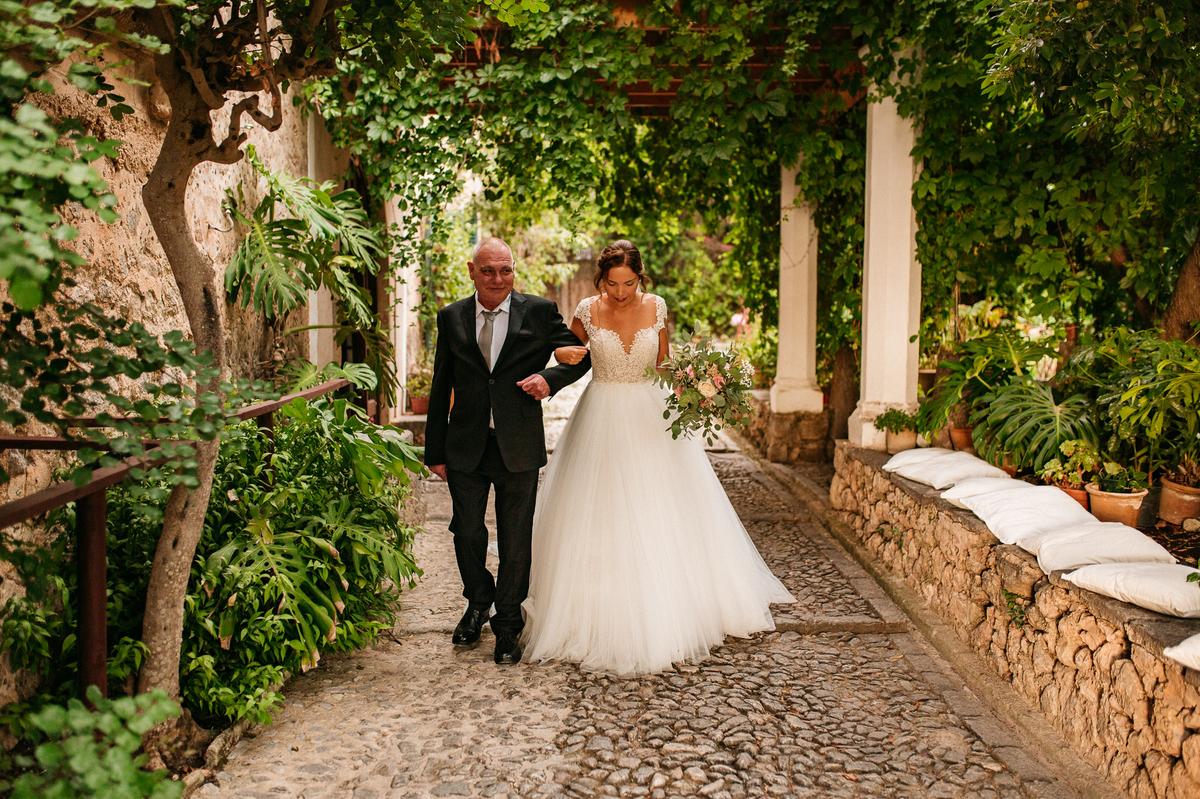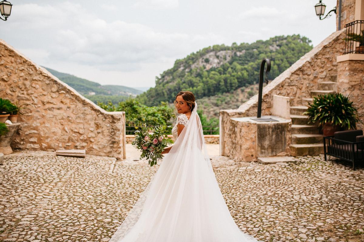 Una vez la novia estaba lista y muy guapa, ocurrió algo que provocó cosquillas de nervios extras en su estómago: las llaves no aparecían y ¡había que salir hacia Son Marroig! Todo el mundo se puso a buscarlas hasta que veinte minutos después aparecieron y pusieron rumbo a la finca. También quedará en la memoría de todos el volantazo que hubieron de dar para esquivar un coche que venía de frente camino de la boda. ¡Cuántas emociones extras!