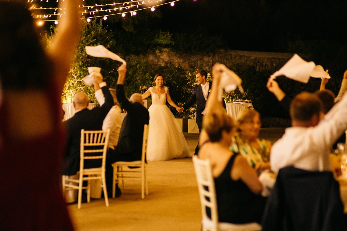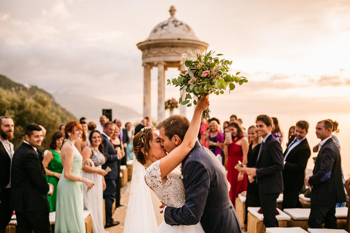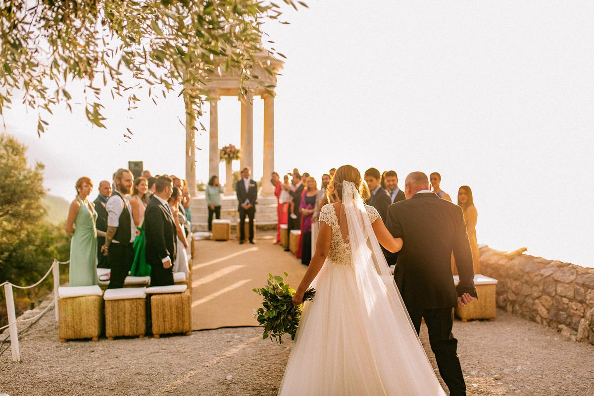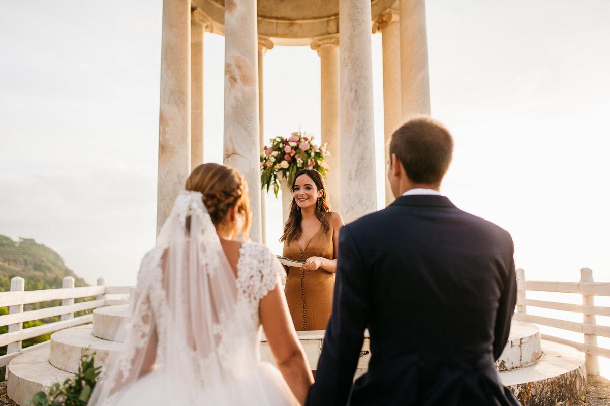 Como detalle os contaremos que las alianzas que usaron para sellar su amor, fueron unas alianzas típicas mallorquinas que mandaron hacer especialmente, la curiosidad es que eran desplegables y abiertas formaban un símbolo de infinito.La ceremonia fue uno de esos momentos tan vibrantes y emocionantes que nadie olvidará fácilmente. La novia entró en el templete a ritmo de River Flows in You de Yiruma.