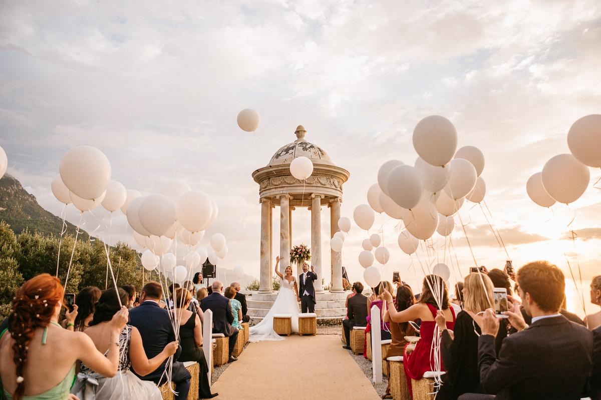 Tras el Sí Quiero de los novios y ya convertidos en marido y mujer, Joan y Aurora se unieron a los invitados para una suelta de globos muy especial, unos globos blancos (biodegradables) que representaron los deseos de todos lanzados hacia el cielo!