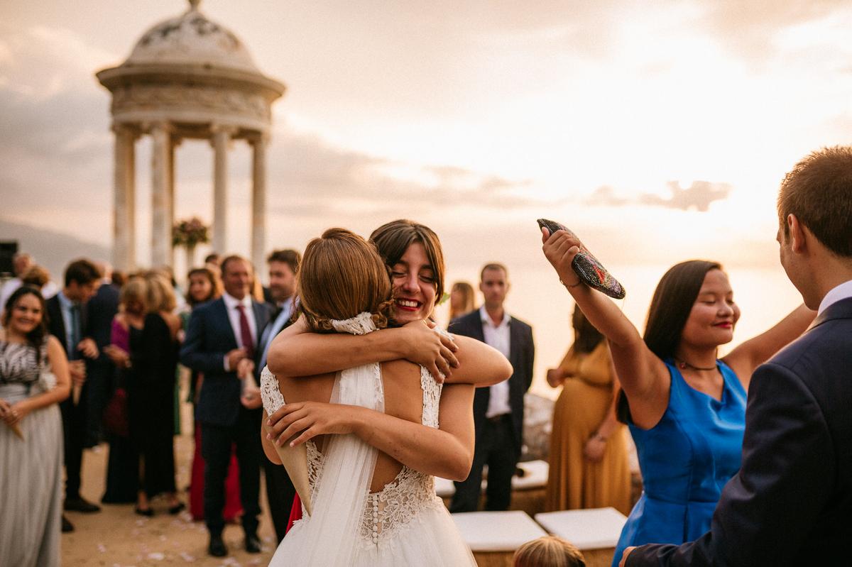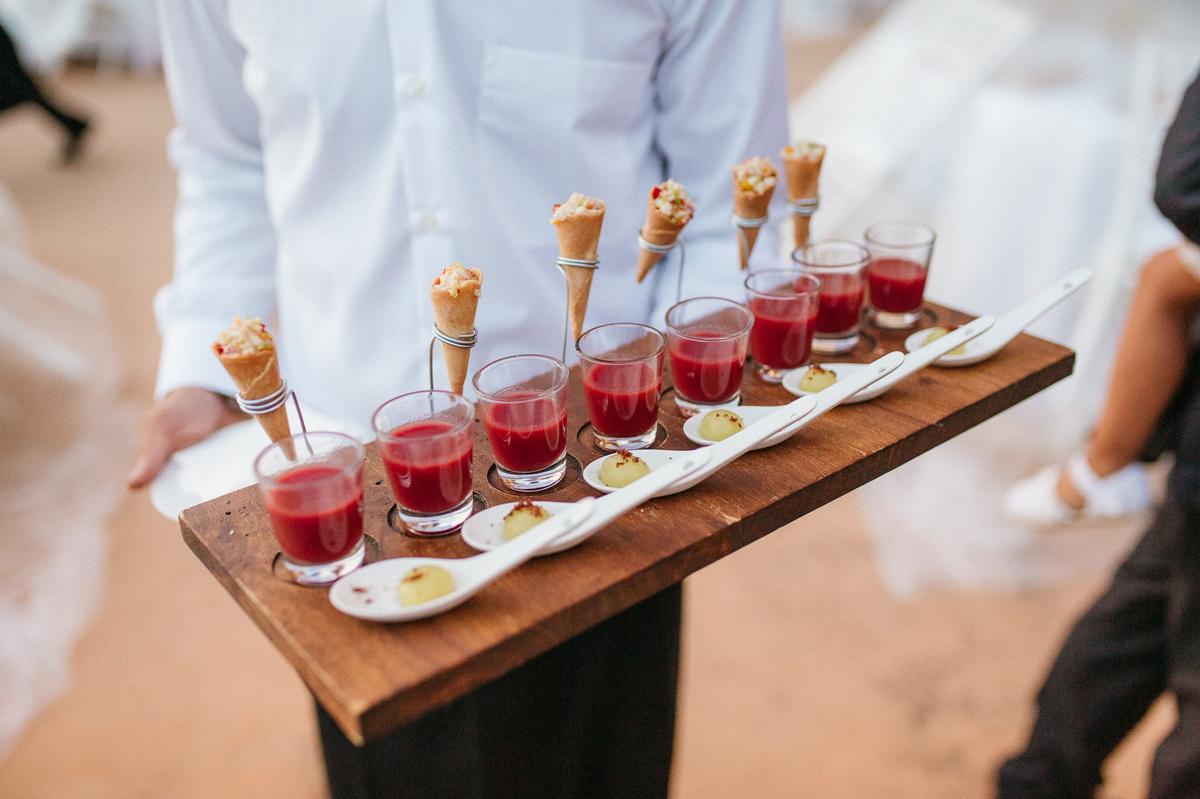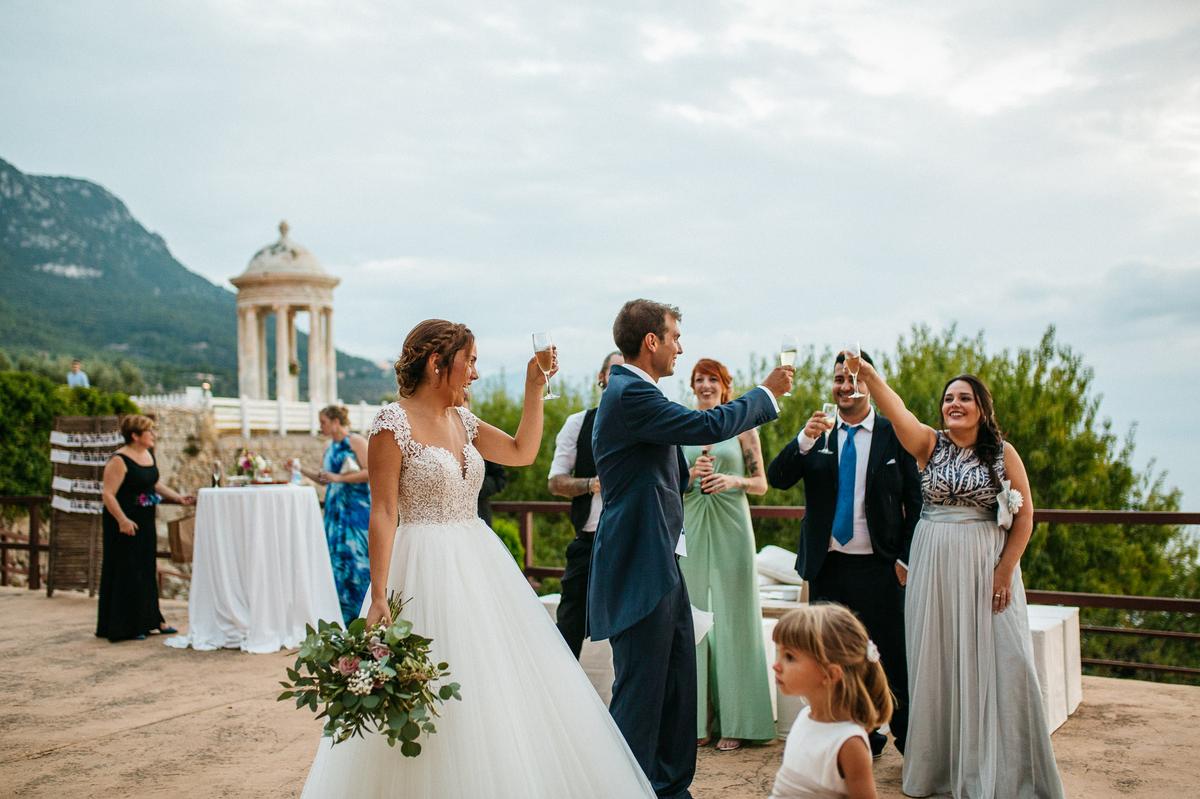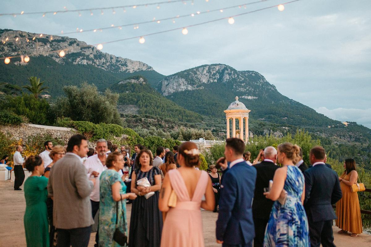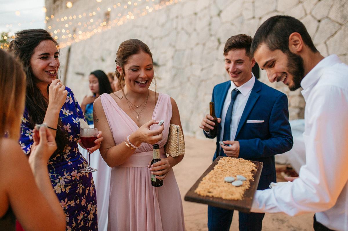 Tras las felicitaciones de todos hacia el nuevo matrimonio, los invitados disfrutaron de un delicioso aperitivo con unas vistas inmejorables. ¡Todo el mundo estaba muy a gusto y sonriente en el primer brindis por los recién casados!