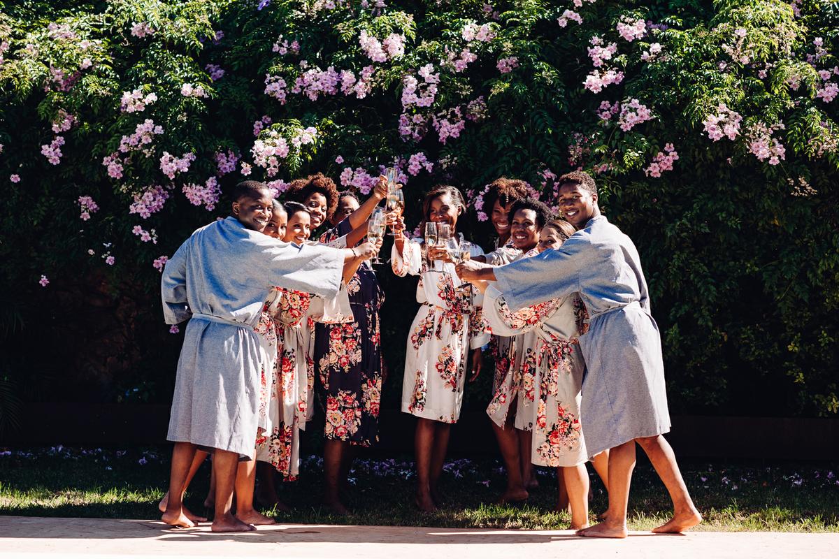 Los Bestmans (amigos del novio) llevaban blazers de Suit Supply en un delicado color rosa empolvado, que complementaba muy bien los vestidos de dama de honor. Completaron su look con unos chinos de color hueso y camisas blancas.
