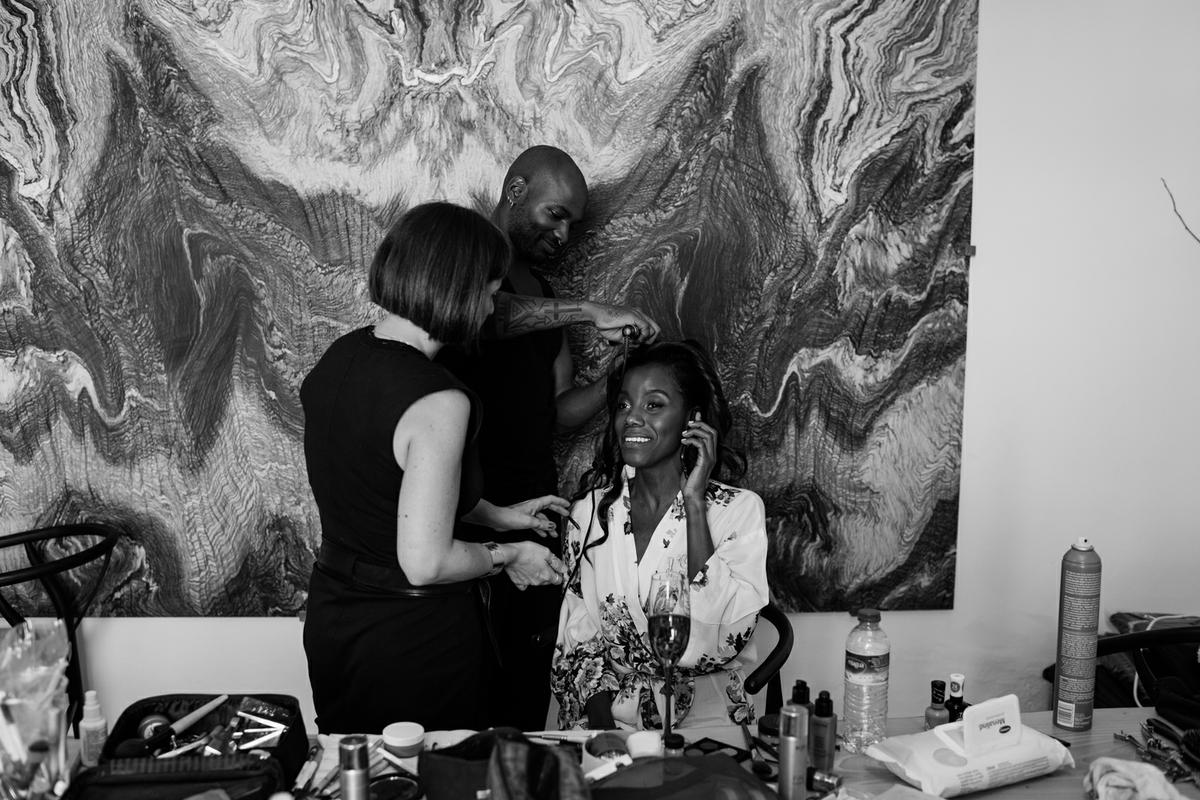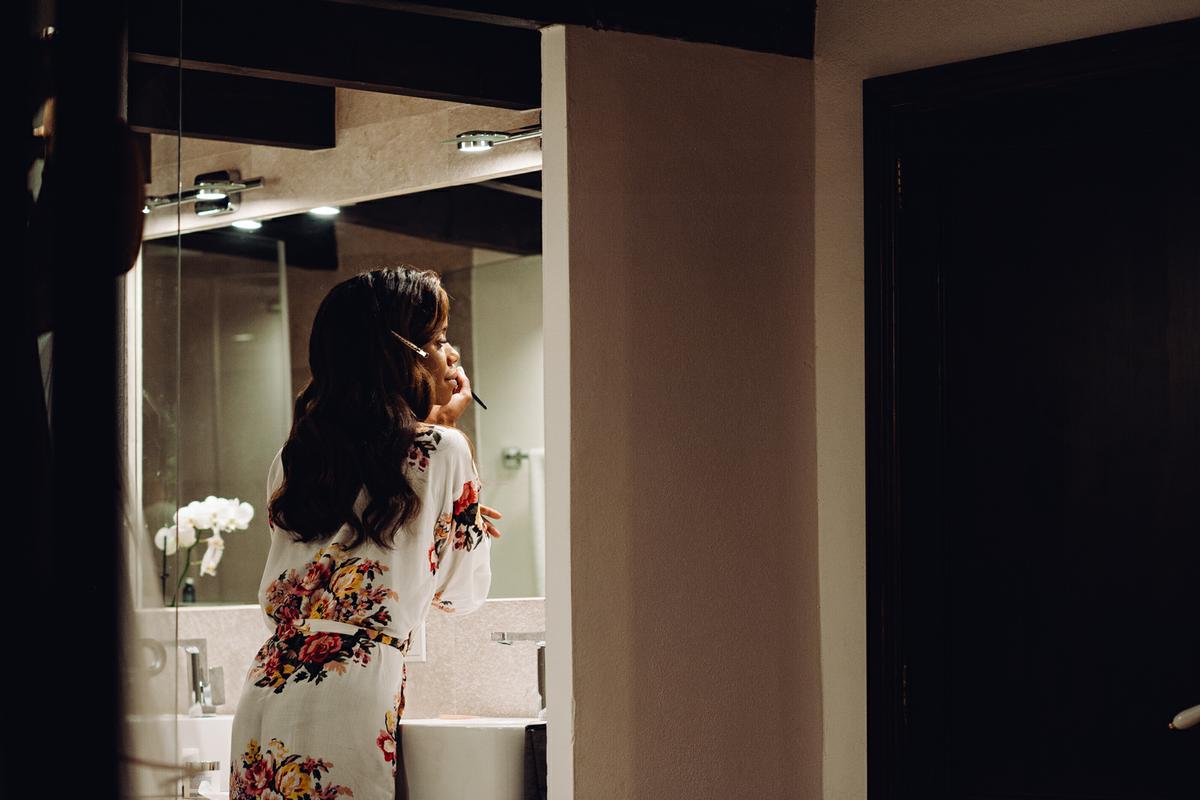 Avion apostó por un precioso vestido que realzaba su estilizada silueta, firmado por Berta. Los zapatos de novia de Christian Louboutin. En principio no deseaba llevar demasiados complementos pero su prometido Pete insistió en regalarle unos pendientes comprados en Mallorca para su día especial. Se preparó con mucho mimo junto a sus damas de honor…