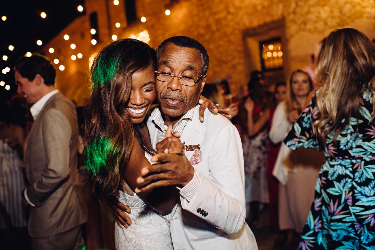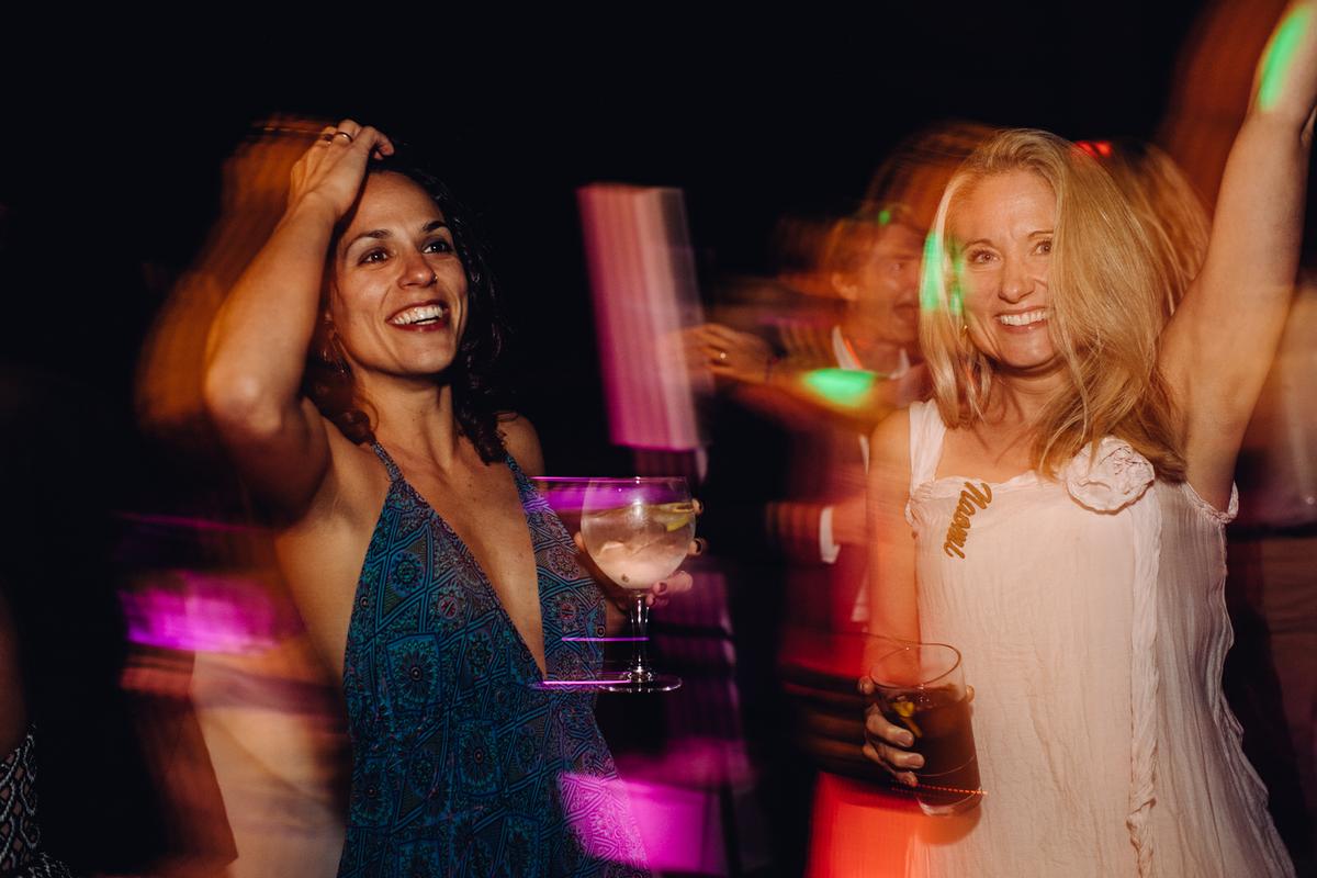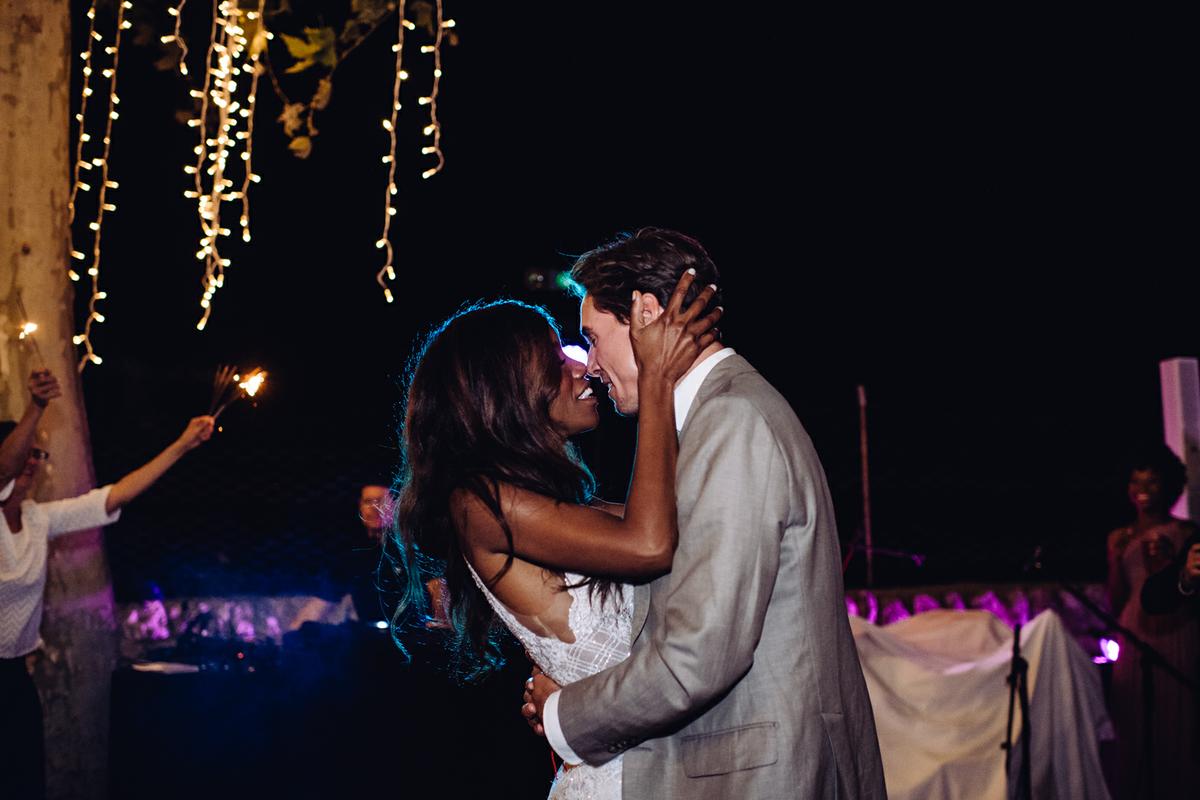 Para el primer baile de los recién casados sonó la canción de “Its Your Love” – Tim McGraw & Faith Hill”, después el novio bailó con su madre y la novia con su padre la canción de “My Girl – Temptations”. Durante la fiesta pincharon tanto el Dj Toni Llobera como Jerôme, primo de la novia. En el momento en que Jerôme se puso a los platos se le unió Patty Ballinas a la batería y los invitados tenían preparado un Flash Mob que bailaron junto a la novia al estilo de Trinidad, ¡¡todo ritmo y todo color!! El paso a la discoteca en el interior se hizo realizando una Conga y pasando el “limbo”, ¡¡hasta los más mayores!!