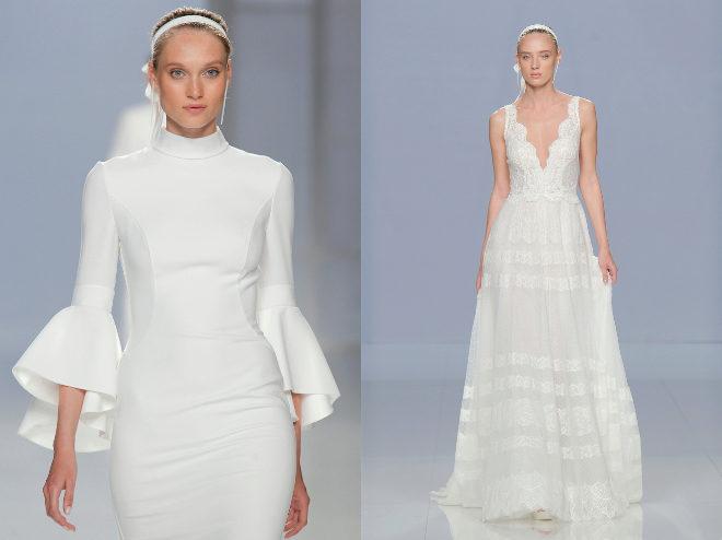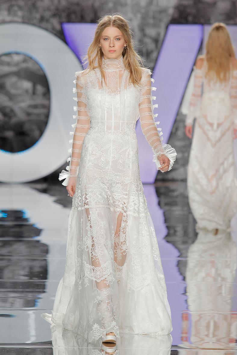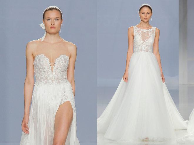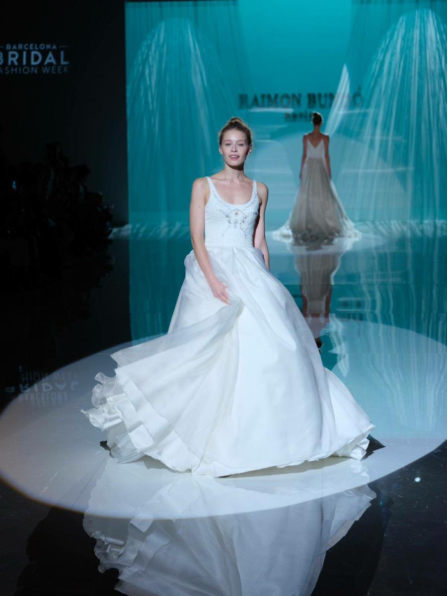 El viernes, y como punto y final a 4 días intensos de desfiles, la firma Pronovias ponía el broche de oro con su última colección diseñada por Hervé Moreau. Esta temporada Pronovias apuesta por unas líneas más minimalistas, que dan protagonismo a la anatomía femenina. Aún así, no falta la línea princesa, con bordados a mano, transparencias, pedrería, plumas e hilos de seda, que siguen recorriendo vestidos con largas colas, corsés y faldas estructuradas. En tejidos, el crepé es el más utilizado, junto con el tafetán y el chiffon.