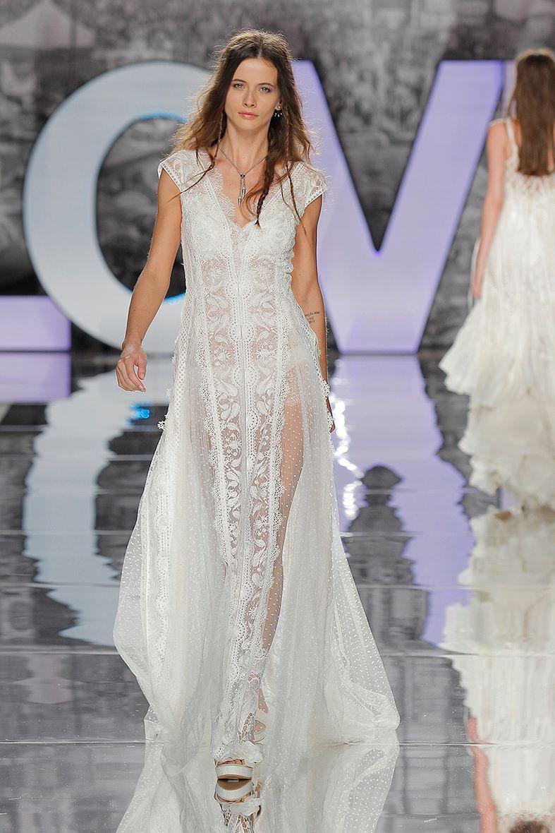 La tarde comenzaba con la colección de Yolan Cris. Trajo el espíritu mas boho de la jornada, con vestidos repletos de detalles sorprendentes, faldas con mucho movimiento y encajes espectaculares.