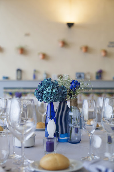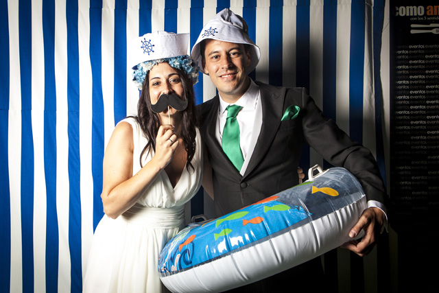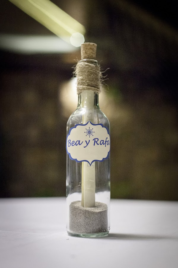 Toda la boda fue decorada y organizada por la novia. Pasando por su vestido, centros de mesa con botellas recicladas , abanicos, decoración , libro de firmas. incluido el photocall con más de 100 disfraces diferentes.
