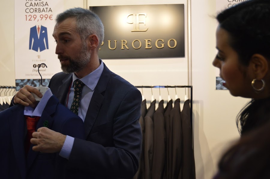 La franquicia Puro Ego, referente en moda masculina en Granada, sigue apostando por trajes sastre en tonos negros o azules. Como particularidad ofrecían los trajes completos en la feria por solo 129,99e.
