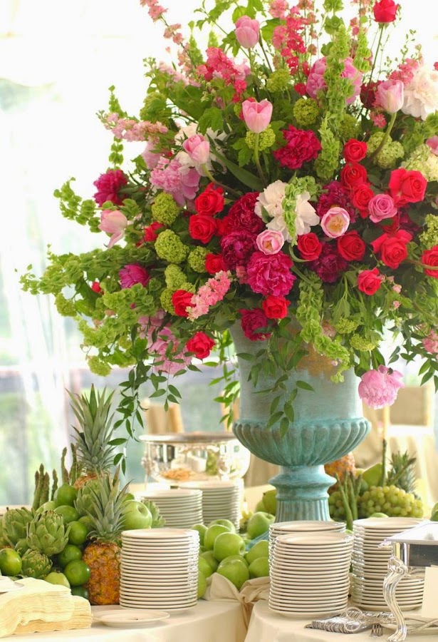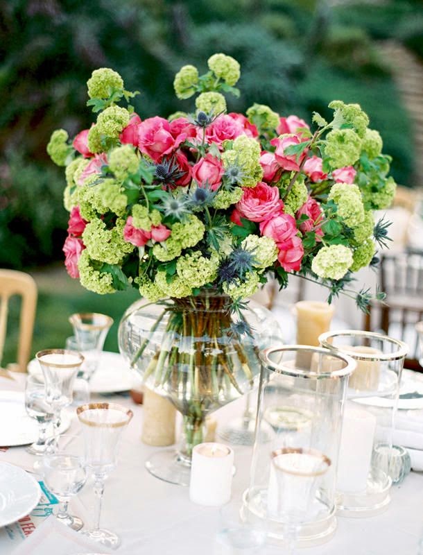 Algunos centros de mesa más sencillos otros más recargados... nada nos parece excesivo en cuanto al uso de las flores se refiere
