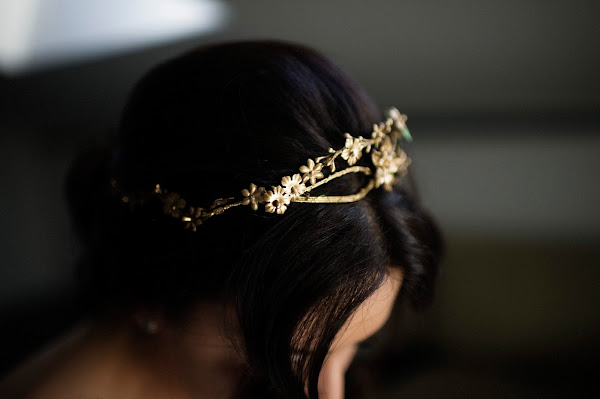 Para el vestido, Bea tenía claro que quería un dos piezas con espalda al aire. Una vez encontró la falda de sus sueños, le confeccionaron un corpiño con una tela de Indumentaria Valenciana con acabado en terciopelo. Sus amigas le regalaron el tocado y los zapatos.