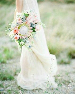 Para complementar el look de la novia, el ramo de flores debe ir acorde a la vaporosidad del vestido. Los ramos de las novias bohemias se caracterizan por ser frescos, delicados y asilvestrados tirando a tonalidades llamativas.