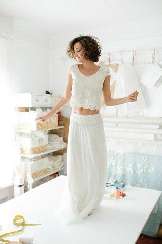 Vestido de dos piezas ideal para esas novias más atrevidas y, a su vez, románticas.